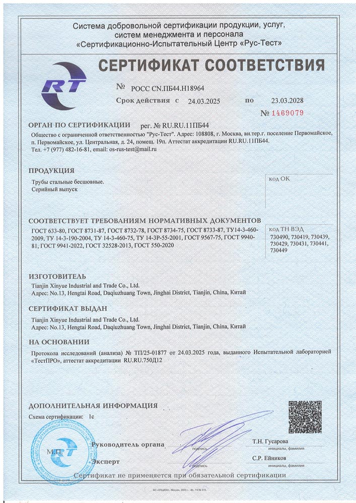 Xinyue set up several production bases in Tianjin & Hebei Province, manufacturing ERW Steel Pipe, SSAW Steel Pipe, LSAW Steel Pipe, Seamless Steel Pipe, Scaffolding system and couplers, RHS, SHS, etc.