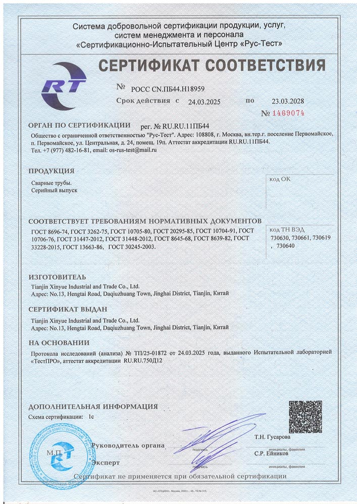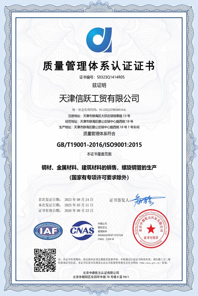 Tianjin Xinyue Steel Group ,HQ located in Daqiuzhuang Industrial Area, Tianjin, branch office located in Changsha, Hunan Province, China, is one of the most famous enterprise of steel pipe in China. Consolidating steel pipe production, stocking, domestic & international marketing. Our aim is creating the best corporation visualization for customer with “ Best Price , High Quality , Fast Delivery, First-Class Service”.